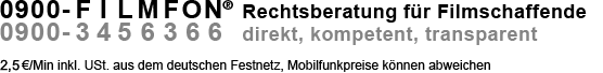 Ohne erst eine Anwaltskanzlei aufsuchen oder für eine Erstberatung bereits mehrere Hundert Euro ausgeben zu müssen, können Filmschaffende mit Filmfon schnell mal eine Frage klären bevor sie zum Problem wird. Viele Fragen lassen sich in einigen Minuten klären, so daß mit Filmfon® echte Anwaltsberatung zum Taxi-Preis ermöglicht wird. Die Abrechnung erfolgt bequem über die Telefonrechnung und läßt sich mit dieser auch steuerlich absetzen. Der Umfang der Beratung beschränkt sich dabei auf eine Erstberatung, d.h. auf die Beantwortung von Fragen, wie sie ein spezialisierter Anwalt ohne Literatur- oder Rechtsprechungsrecherche geben kann. Sollte sich während der Beratung herausstellen, daß die Fragen ohne weitere Recherche oder Sichtung von Unterlagen nicht zu klären sind, wird umgehend darauf hingewiesen.